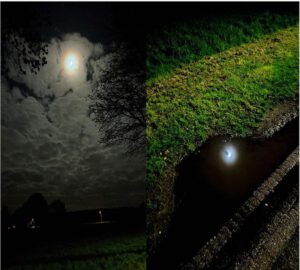 “Dromerig en geheimzinnig schijnt de maan en bewondert zij haar schoonheid in de stilte van de waterplas.” 24 april 2024 |